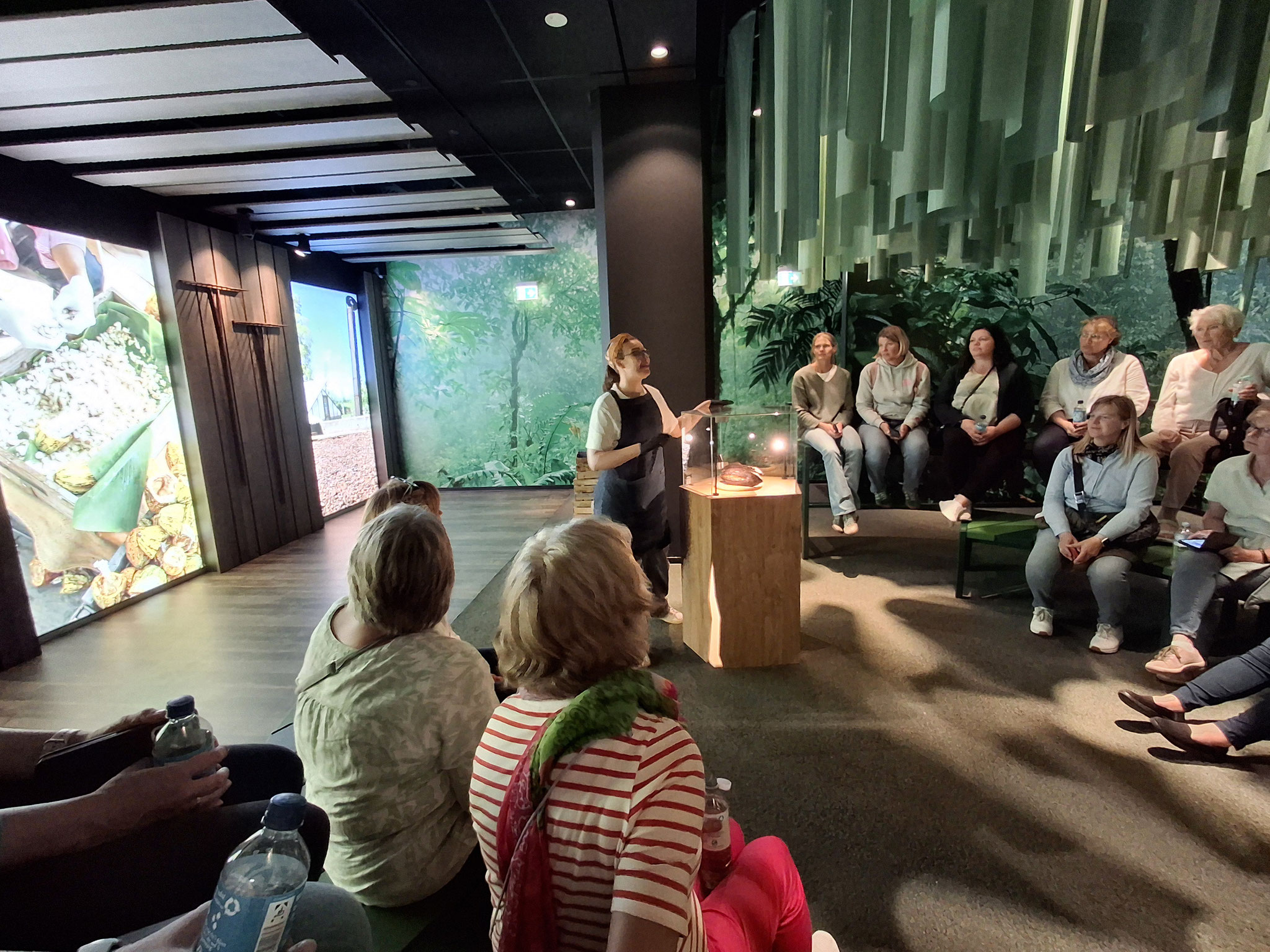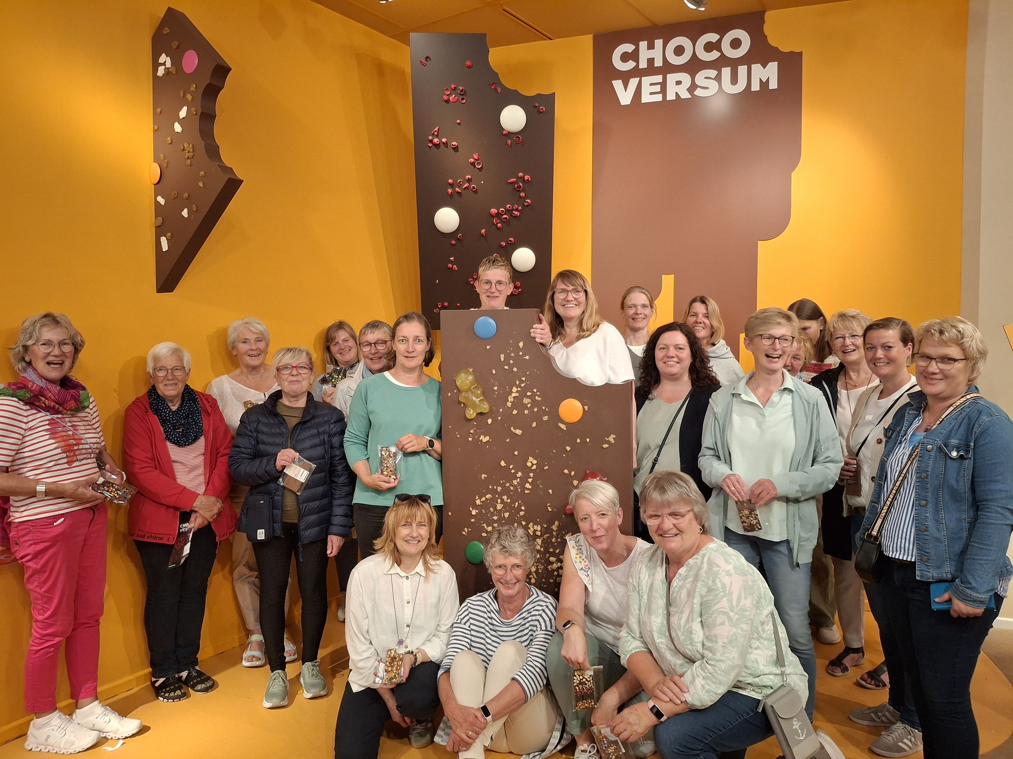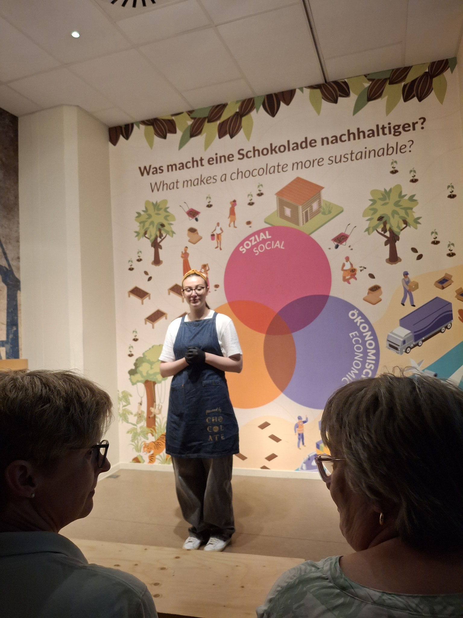 Aufgrund der vielen Anmeldungen haben wir uns auf zwei Termine aufteilen müssen. Die Führung war sehr interessant und informativ. Wir durften die Produktionsräume besichtigen und bei der Herstellung der Bonbons zugucken, probierten frisch produzierte Schokoküsse, warme Lollies und Bonbons in ver-schiedenen Geschmacksrichtungen. Ein Paradies von Schleckereien und wir mitten drin...