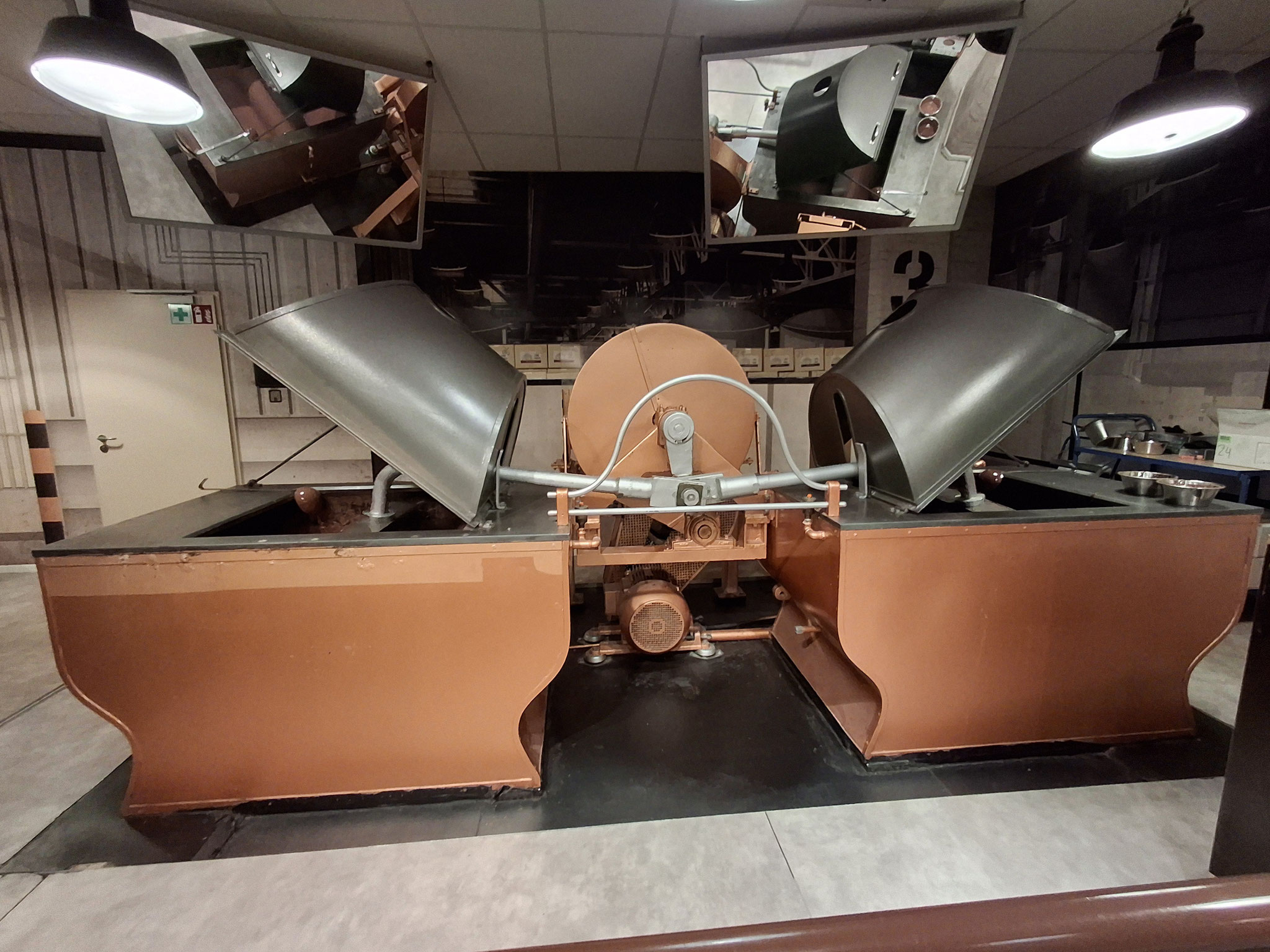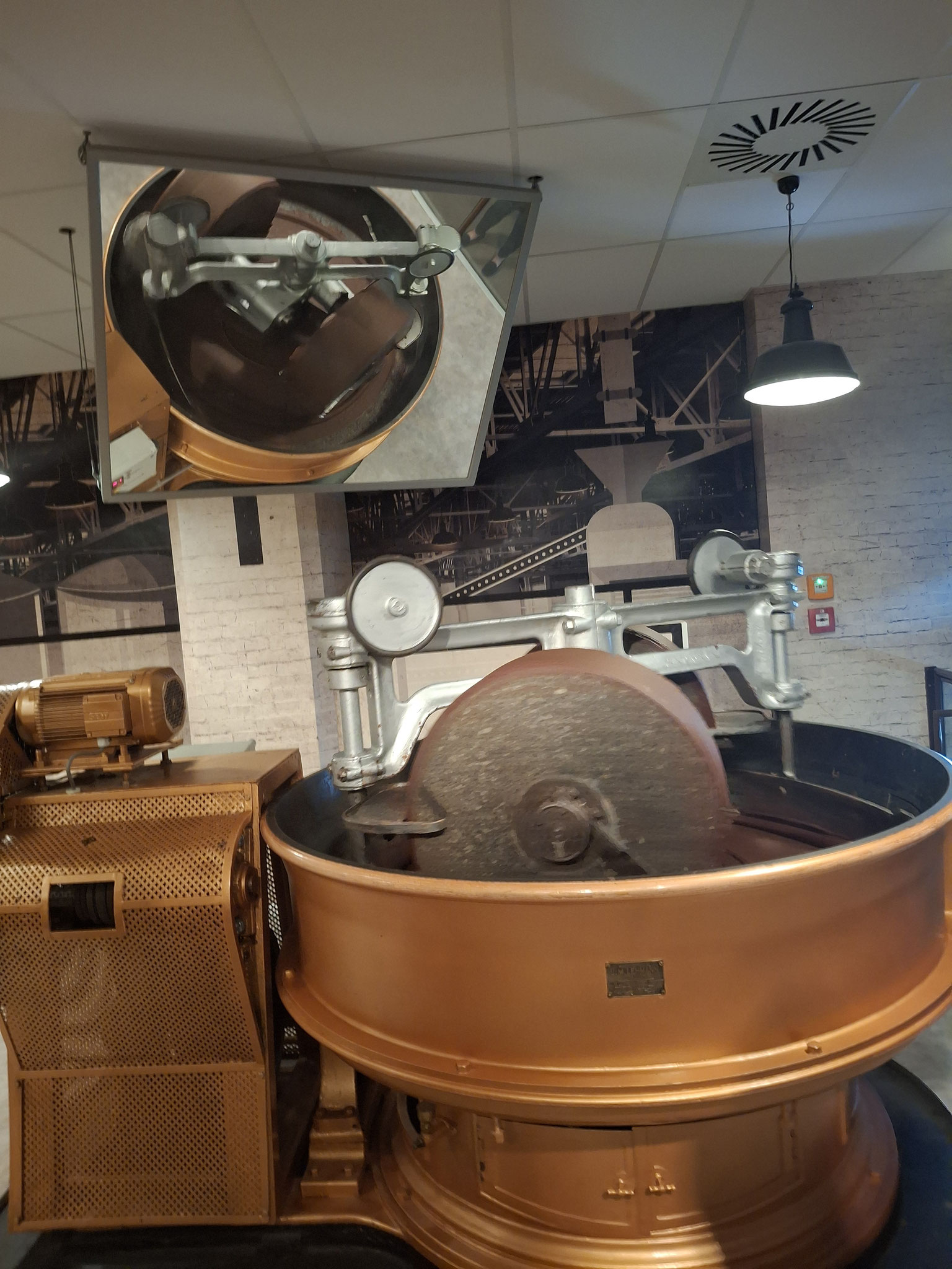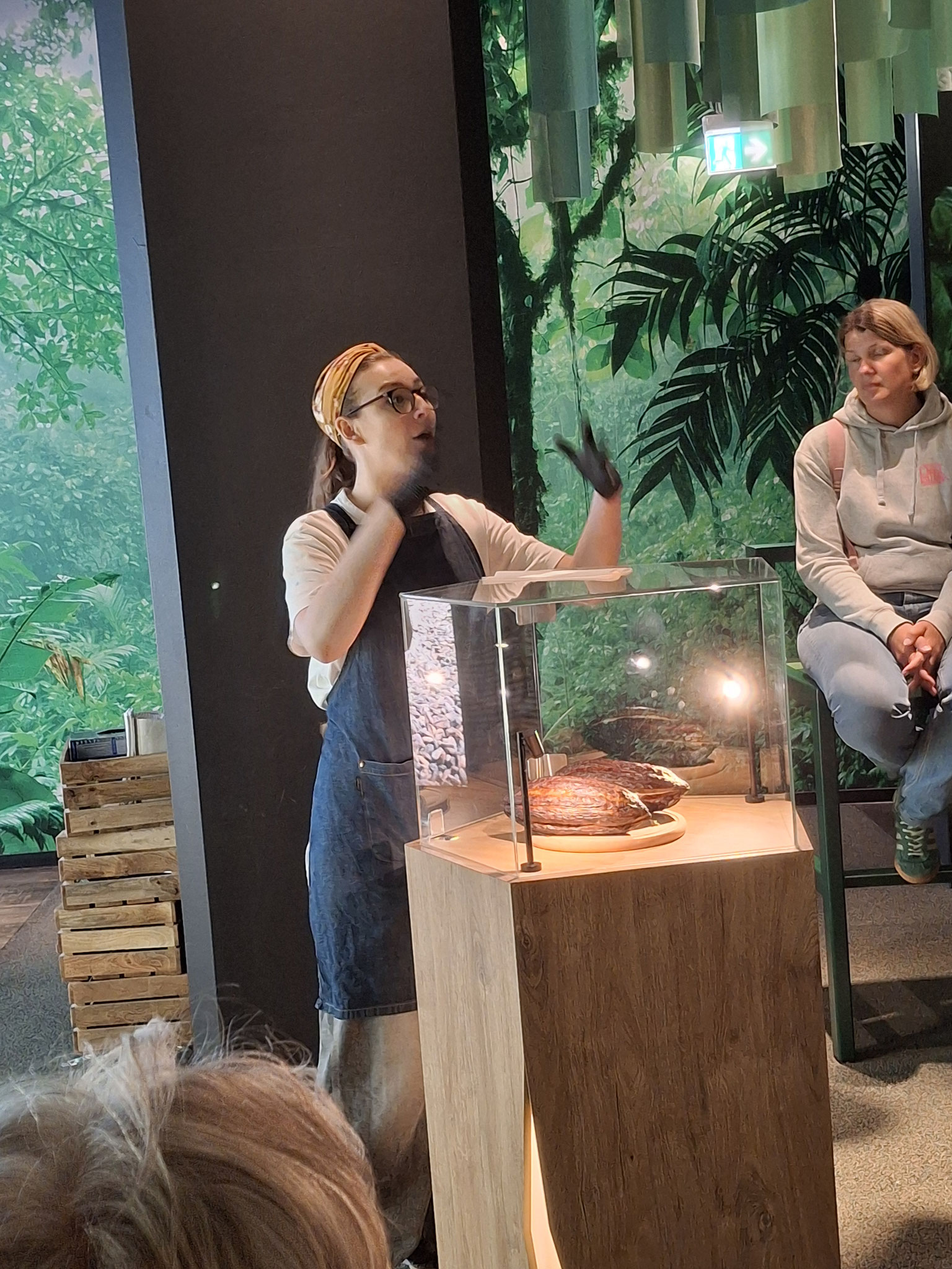 Bei der Führung wurden uns die Schritte von der Bohne bis zur Tafel anhand von alten Maschinen und modernen Stationen sehr genau erklärt; wir konnten fühlen, schmecken und riechen, wie die Kakaobohne im Einzelnen immer weiterverarbeitet wurde.