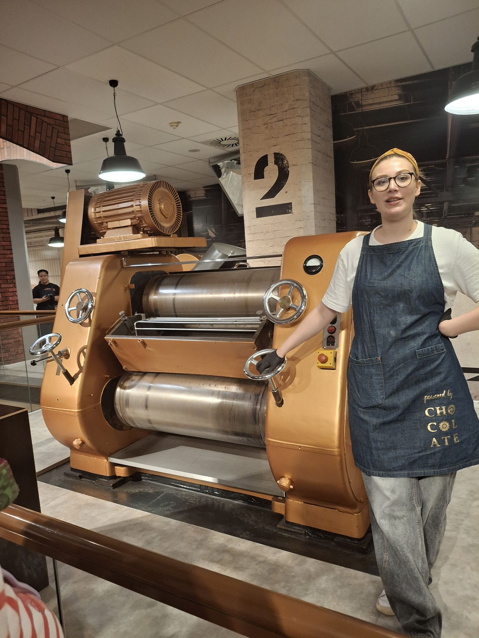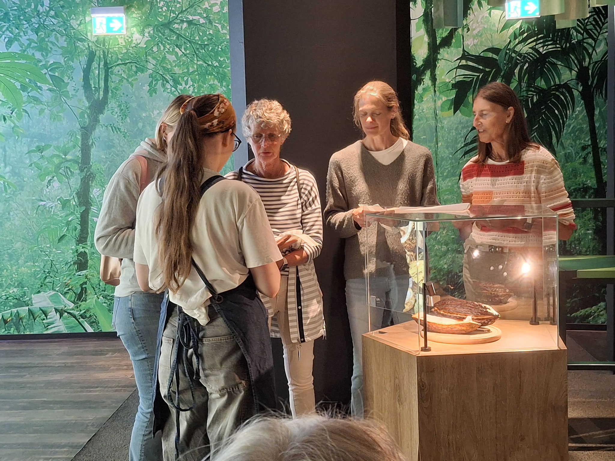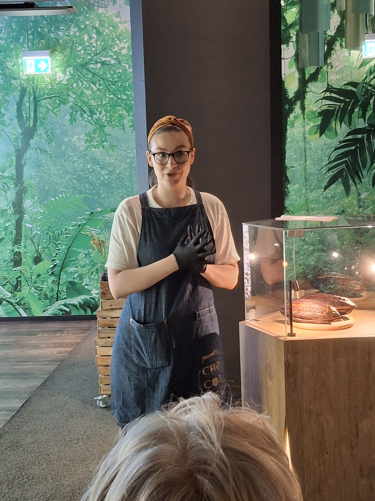 Bei der Führung wurden uns die Schritte von der Bohne bis zur Tafel anhand von alten Maschinen und modernen Stationen sehr genau erklärt; wir konnten fühlen, schmecken und riechen, wie die Kakaobohne im Einzelnen immer weiterverarbeitet wurde.
