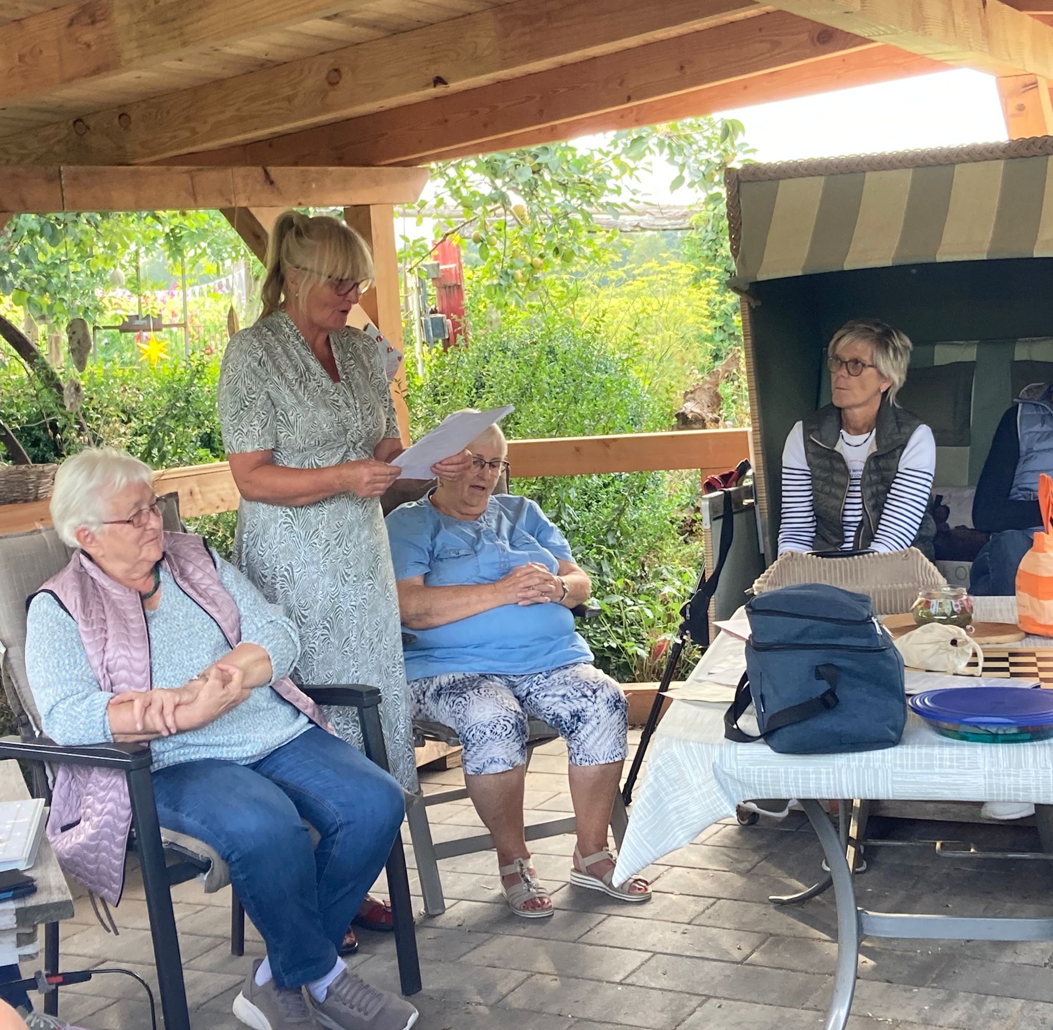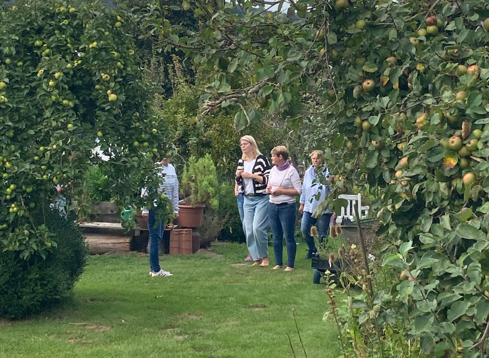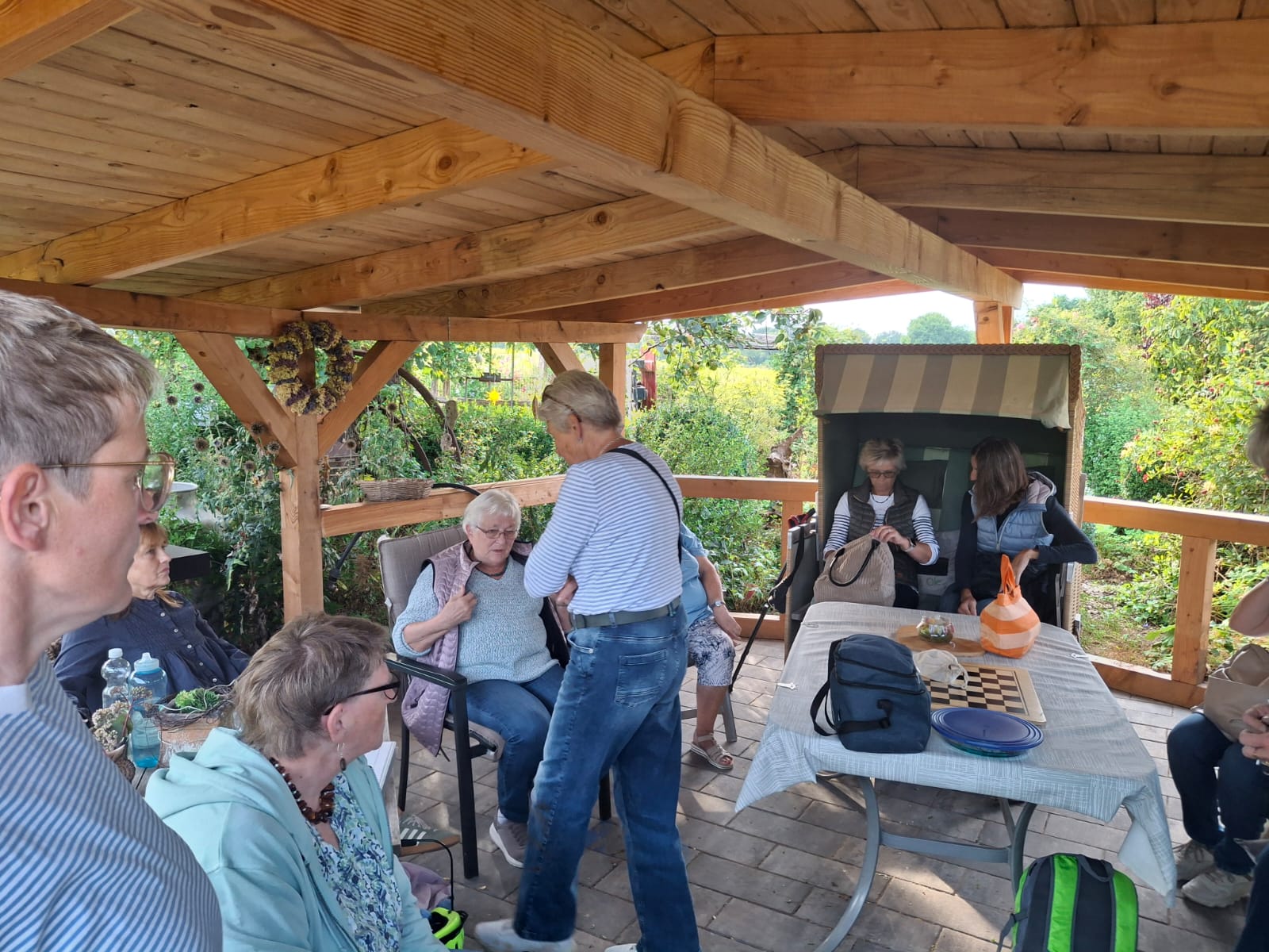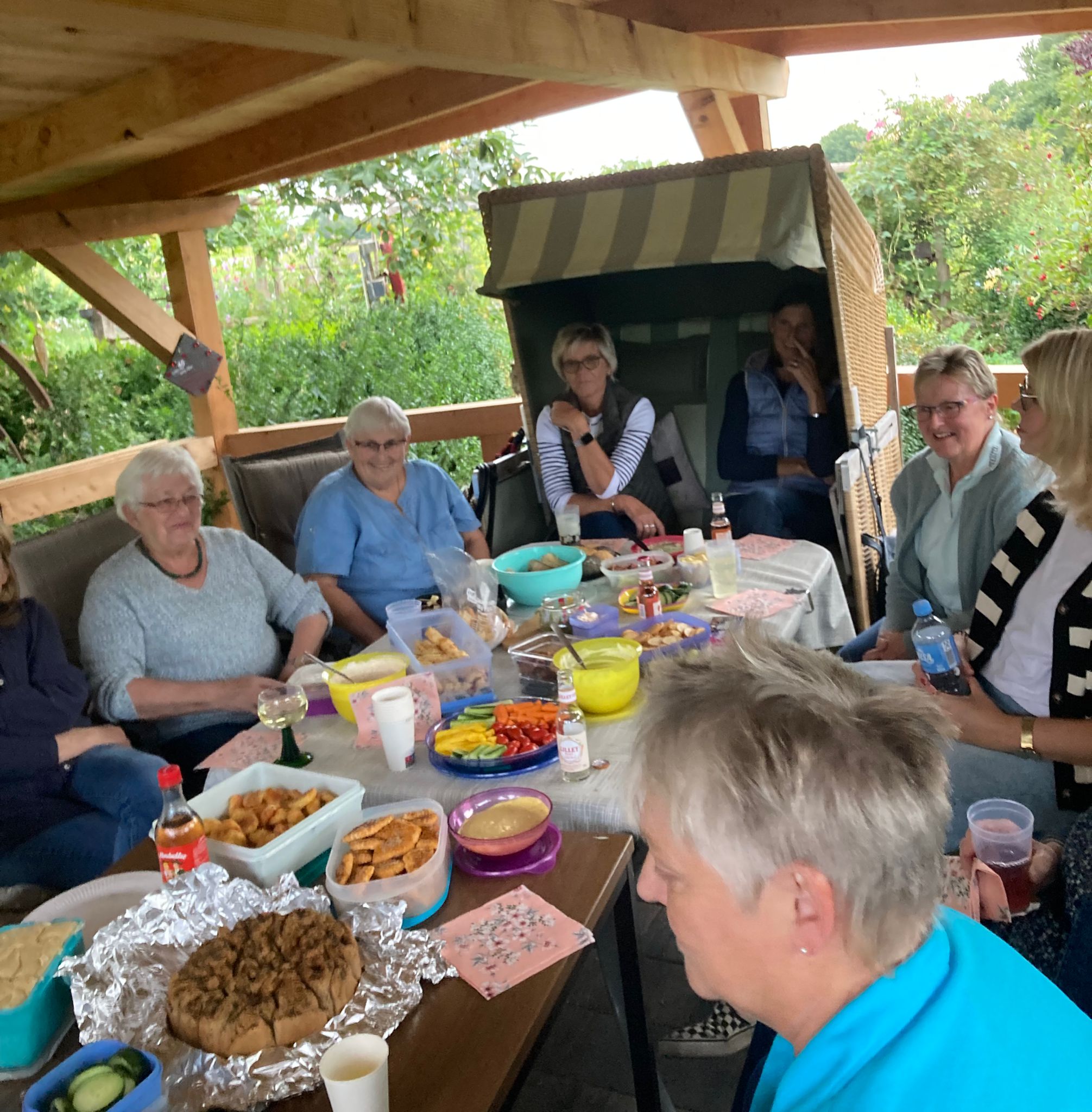 Herzlichst wurden wir von Traute empfangen und durch ihren Naturgarten ge-führt. Es ist immer wieder ein Erlebnis für alle Sinne. Nach dem Rundgang haben wir noch gemütlich im Gartenpavillion zusammen gesessen, geschnötert und das mitgebrachte, bunte Fingerfood-Buffet genossen.