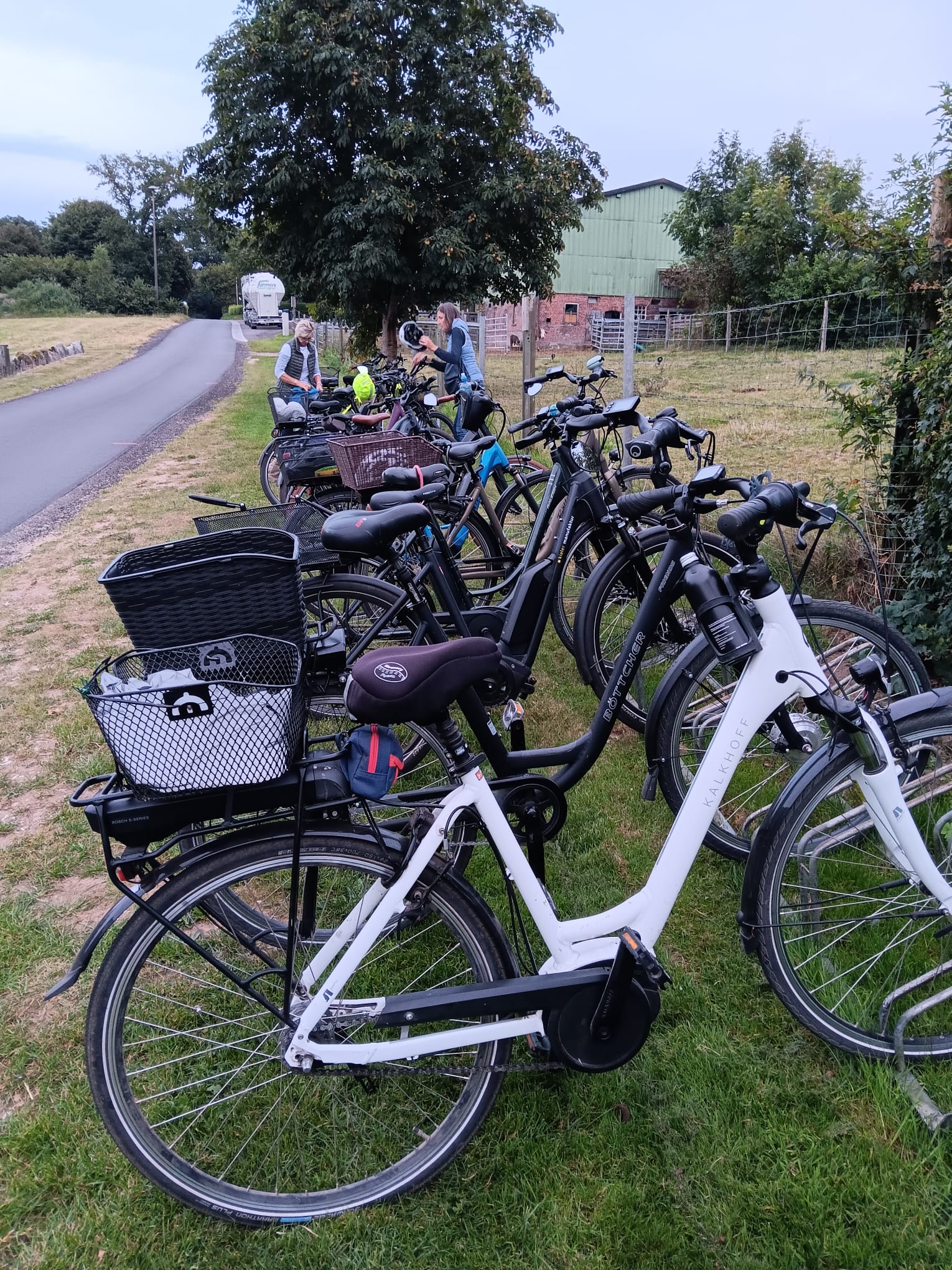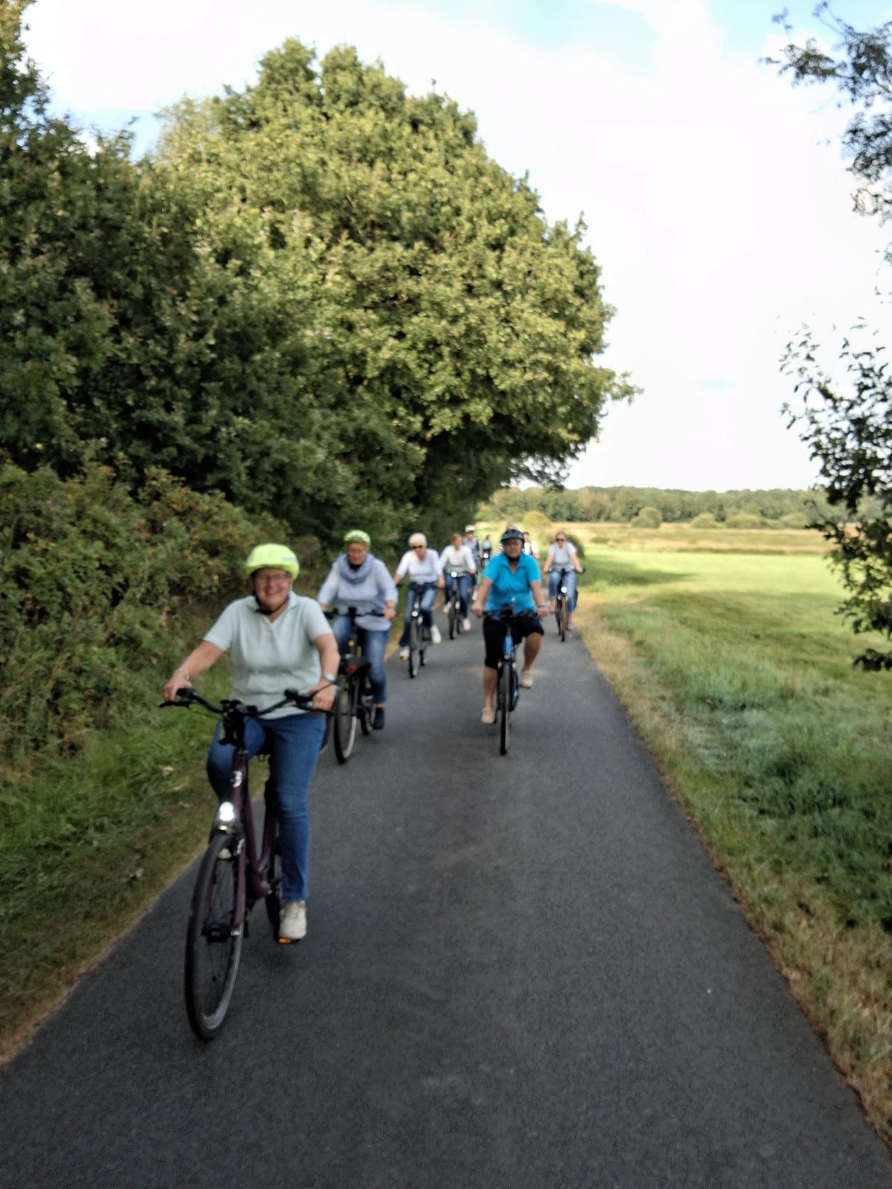 Bei sommerlichen 30 Grad im Schatten trafen wir uns am 22.06.2025 um 14.30 Uhr bei Bente in Beringstedt um zu einer E-Bike-Tour Richtung Kanal 33 zu star-ten. Über Seefeld, Warringholz, Aasbüttel und Bokhorst und Holstenniendorf führte uns die Tour schließlich ins Kanal 33, wo für uns auf der Terrasse bereits ein Platz reserviert war. Dort trafen wir uns mit einer handvoll Landfrauen, die mit dem Auto hinterher gefahren waren. Nach einem erfrischenden Getränk wur-den uns pünklich um 17.00 Uhr unsere leckeren Pizzen serviert.